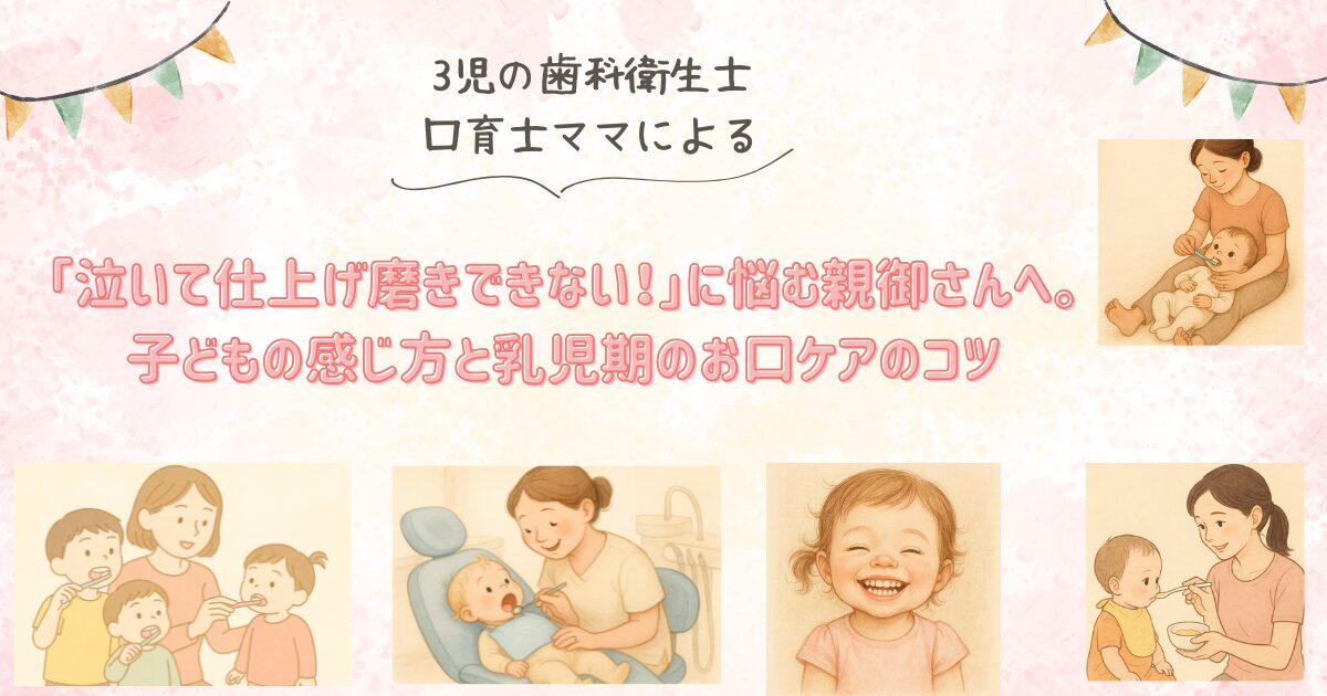 歯科衛生士・口育士として多くの親子の仕上げ磨きに立ち会った体験をもとに、「子どもは仕上げ磨きをどう感じているのか」「乳児のお口はいつから触ってよいのか」といった疑問を、専門的かつ家庭のリアルな視点から一緒に考えてみましょう。